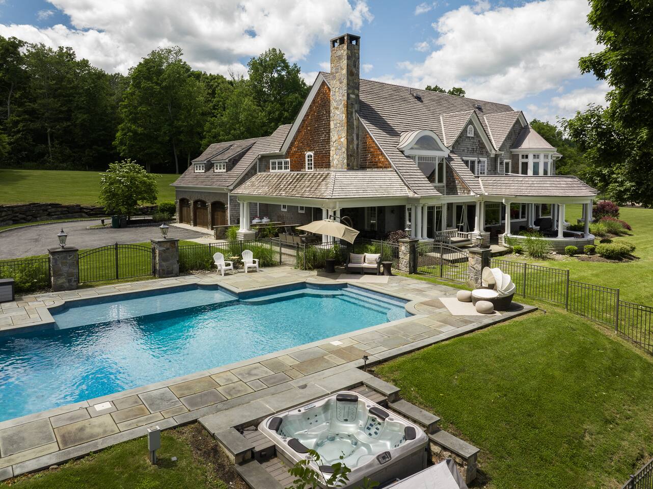 Discover a splendid 5,000 sq ft Hamptons-inspired residence nestled on 7 private acres with breathtaking Hudson River view. Enjoy the perfect blend of privacy & proximity. Explore nearby wineries, dining, hiking, ski resorts, & all essential amenities. This retreat offers a wealth of comfort, including an outdoor fireplace & entertainment area, a cozy great room with a fireplace, a gourmet kitchen, a private office, an additional media room, & enticing outdoor features such as a pool & hot tub.