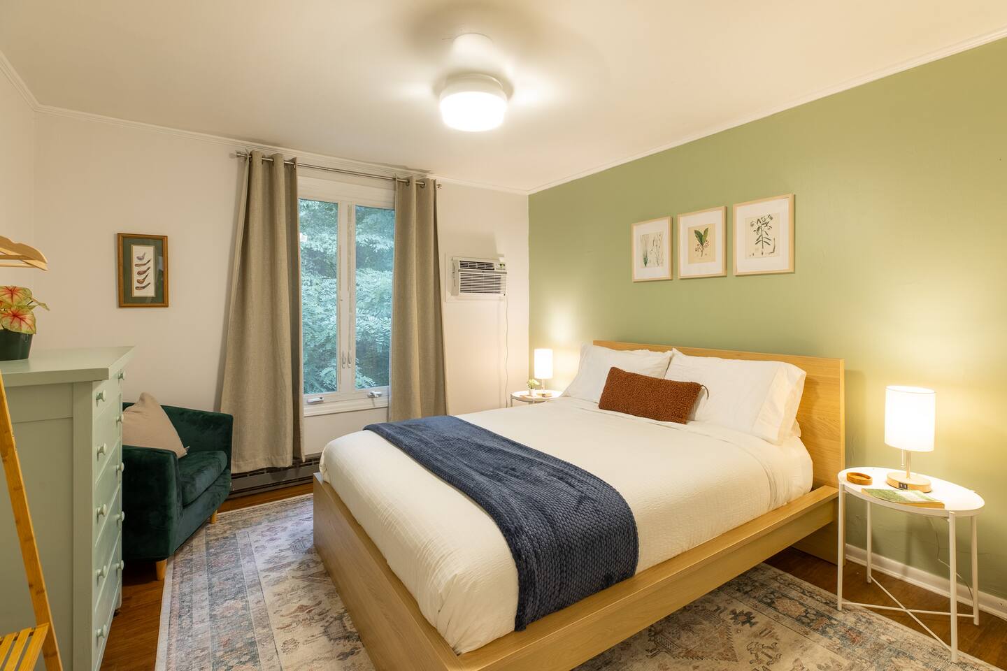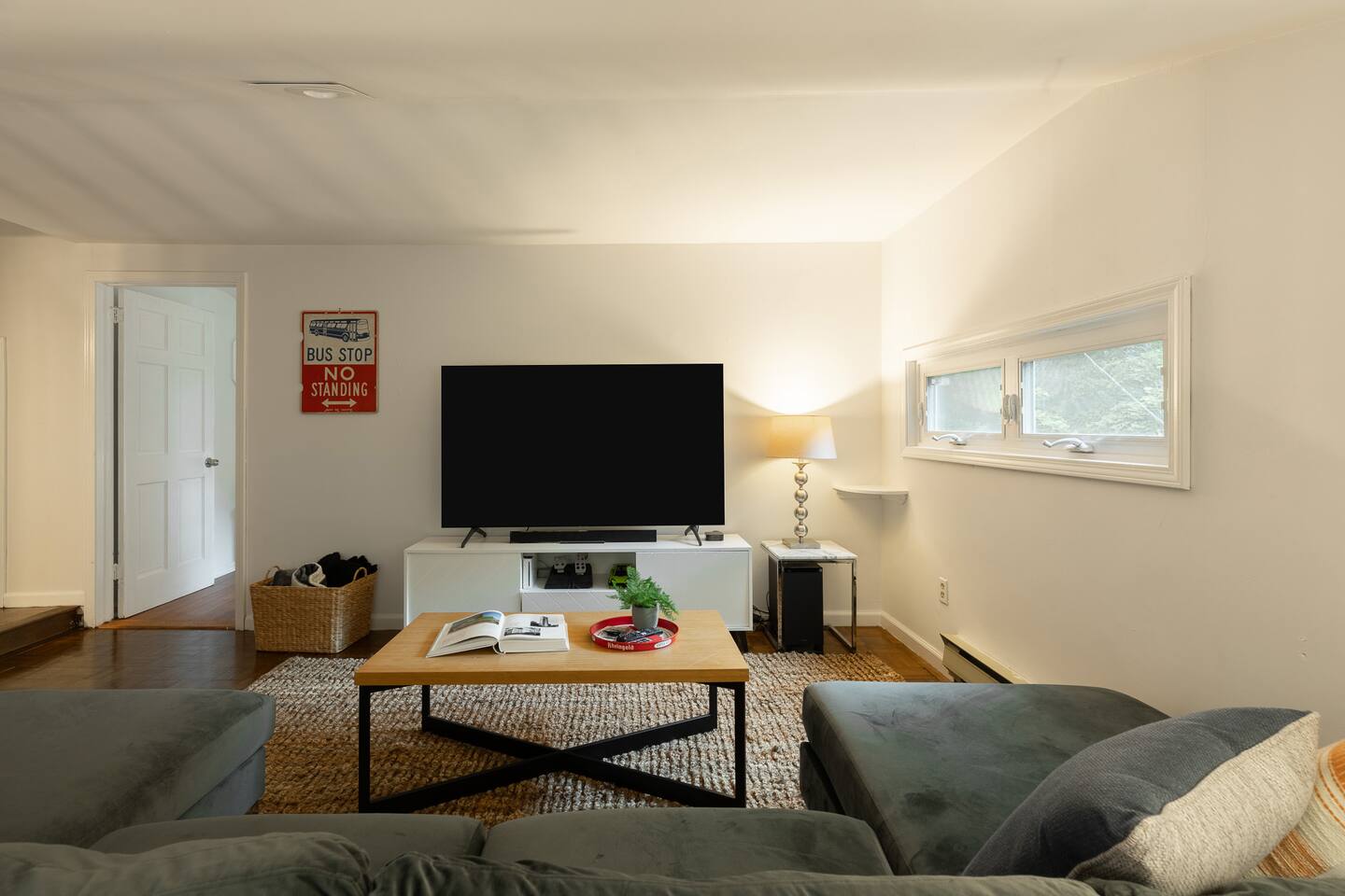 Located close to waterfalls, hiking trails, mountains, ski resorts, wineries & breweries, in the Heart of Catskills. ✔ Family amenities: highchair + playpen ✔ Large backyard w/ firepit overlooking pond ✔ Dogs allowed** ✔ 248 Mbps Wi-Fi ✔ Backyard with outdoor dining ✔ 70” Smart TV with Apple TV ✔ Bluetooth sound system ✔ BBQ grill ✔ Onsite parking ✔ Keurig coffee maker ✔ AC + Heating ✔ Self-check-in ✔ Long term stays 3 mins → Round Top Mountain Biking Trails 5 mins → Glenn Falls 23 mins → Windham Mountain Club 31 mins → Hunter Mountain **Dogs under 50lbs are allowed upon request. Subject to fines if damages or cleaning complications occur.