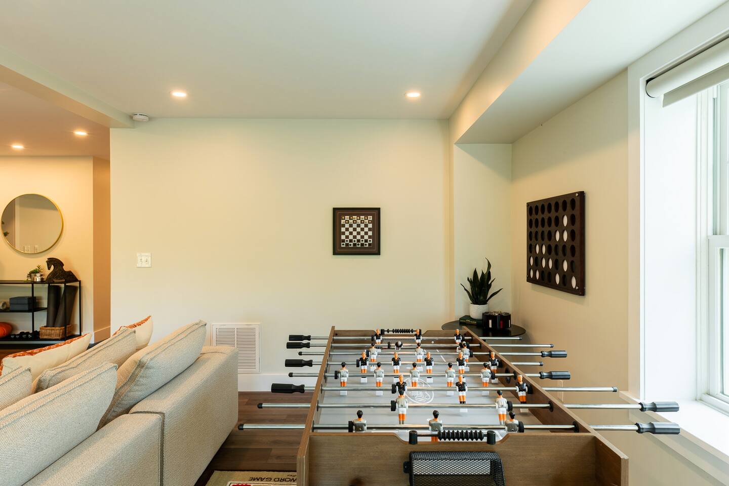 ➪ Waterfall Views (no access - sorry) ➪ Creek Access ➪ Outdoor dining area with umbrella ➪ Sun lounges overlooking creek and waterfall ➪ Hammock ➪ Fire-pit and Electric Fireplace ➪ Game Table with Air Powered Hockey, Foosball, and Table Tennis ➪ BBQ ➪ Basement Play Room ➪ Nespresso and French Press Coffee Makers ➪ Central Heating + AC ➪ Private Office with Chair and Desk ➪ Board Games ➪ Exercise Weights ➪ Self-check-in ➪ For Families: High Chair, Playpen, and Baby Gate ➪ Luggage Drop Off ➪ Long Term Stays Provided with the house: ➪ Towels, washcloths, makeup towels, and hand towels ➪ Bedsheets: 300 thread count cotton, blankets, comforts ➪ Organic Toiletries ➪ Organic Hand Soap/Lotion at the bathroom sink ➪ Paper towels in the kitchen area ➪ Pots/pan ➪ Glasses (Wine + Water) ➪ Plates ➪ Kitchenware ➪ Kitchen set: hand towel, dish detergent, sponges ➪ Coffee ➪ Salt, pepper, and spices ➪ Flashlight ➪ Umbrella ➪ Trash bags