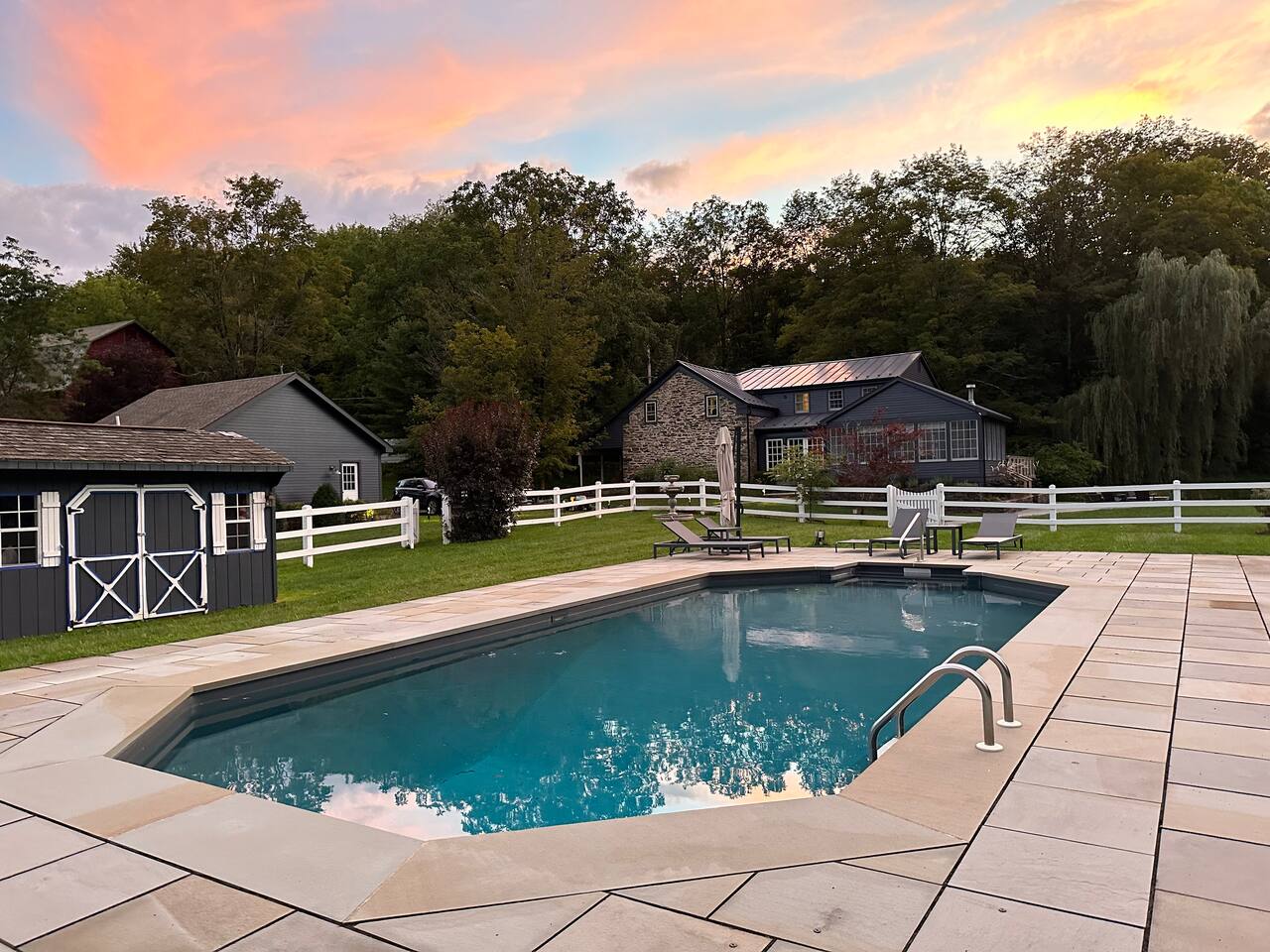 Step into 175 years of history at Deerfield Farm Estate, a restored stone farmhouse on 10 private acres in the Catskills. Just 2 hours from NYC, this secluded retreat offers 4 bedrooms, 2.5 bathrooms, a generator powering the property in case of outages, a chef’s kitchen, sunroom, fireplace, heated pool, fire pit, and a private non-swimmable pond. Enjoy total privacy with an easy drive to excellent local restaurants—perfect for couples, families, and dog lovers seeking a refined country escape.