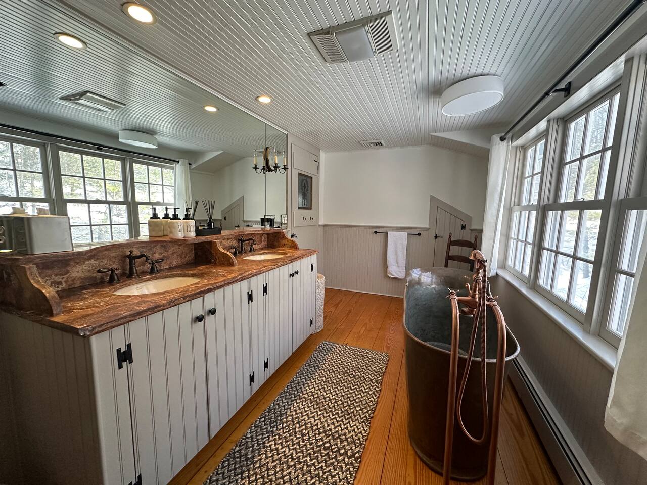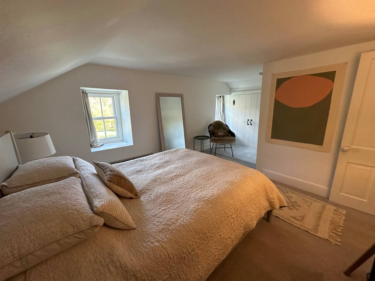 Located in Accord, NY, close to hiking trails, farms, wineries, breweries, golf, and top Hudson Valley attractions. Other amenities: ➪ Historic 4-bedroom farmhouse accommodating 6 adults and 1 child ➪ Warm, inviting interiors designed for relaxation and connection ➪ Primary suite with king bed, copper soaking tub, spa steam shower, and peaceful views ➪ Two guest bedrooms with Queen & Full beds sharing a full bath ➪ Cozy child’s room perfect for little ones ➪ Half bath on the main floor ➪ Sunroom, a peaceful place to read or sip coffee ➪ Wood-burning fireplace, perfect for chilly evenings ➪ Heated seasonal pool with sun loungers ➪ Chef’s kitchen fully equipped with professional-grade appliances and a bar for entertaining ➪ High-speed Wi-Fi ➪ Central heating + A/C ➪ Onsite washer + dryer ➪ Expansive stone patio ➪ Fire pit ➪ Lush gardens ➪ Onsite parking The Property: Surrounded by a deer fence and mature trees for privacy, the estate features a large pond with scenic views, open meadows and wooded trails, a charming planter garden, and ample space for lawn games, quiet walks, or enjoying nature. Nearby Attractions: ➪ Minnewaska State Park & Ashokan Reservoir for hiking, biking, and nature trails ➪ Saunderskill Farms, Kelder’s Farm, and Stone Hill’s Farmhouse for family-friendly fun and local produce ➪ Ollie’s Pizzeria, Arrowood Brewery, and Westwind Orchard for food and drinks ➪ Stone Ridge, Rosendale, Kingston, and Woodstock for boutique shopping, live music, and cultural events ➪ Inness, a design-forward resort and golf club just minutes away Whether you're seeking a relaxing weekend, a family adventure, or a creative escape, Deerfield Farm offers a unique and cozy Catskills experience. *Seasonal heated pool available during warmer months. **Dogs under 50 lbs allowed upon request. Subject to fines if damages or cleaning complications occur.